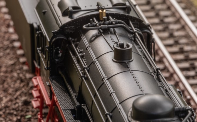 Besondere Details sind die schwenkbaren Führerstandstüren und die imitierten typischen Vorhänge zwischen Lok und Tender. Mit dem eingebauten Pufferspeicher meistert das Modell auch kurze stromlose Bereiche ohne zu "ruckeln".