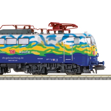 Das Modell der BR 111 und die Nahverkehrswagen wurden aufwendig mit unterschiedlichen Seiten gestaltet.