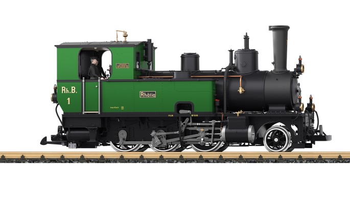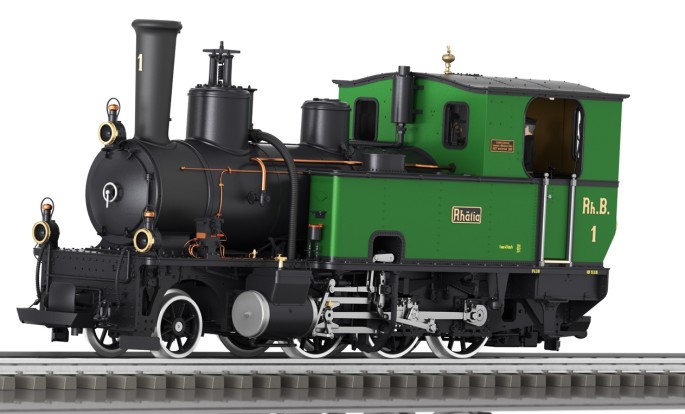 Modell der Lok 1 "Rhätia" der RhB im Zustand als Museumsfahrzeug in grün/schwarzer Farbgebung. Die Lok kehrte 1988 zum 100 jährigen Jubiläum zu RhB zurück, nachdem sie 1970 an die Museumsbahn Blonay–Chamby verkauft worden war. Die Lok wurde so bis ins Jahr 2014 vor Sonderzügen eingesetzt.