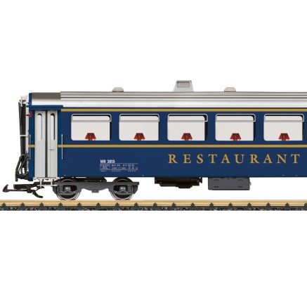 Der Restaurant-Wagen mit beleuchteten Tischleuchten